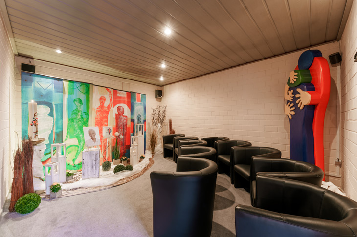 - Würdevolle Dekoration der Trauerhalle auf allen Friedhöfen